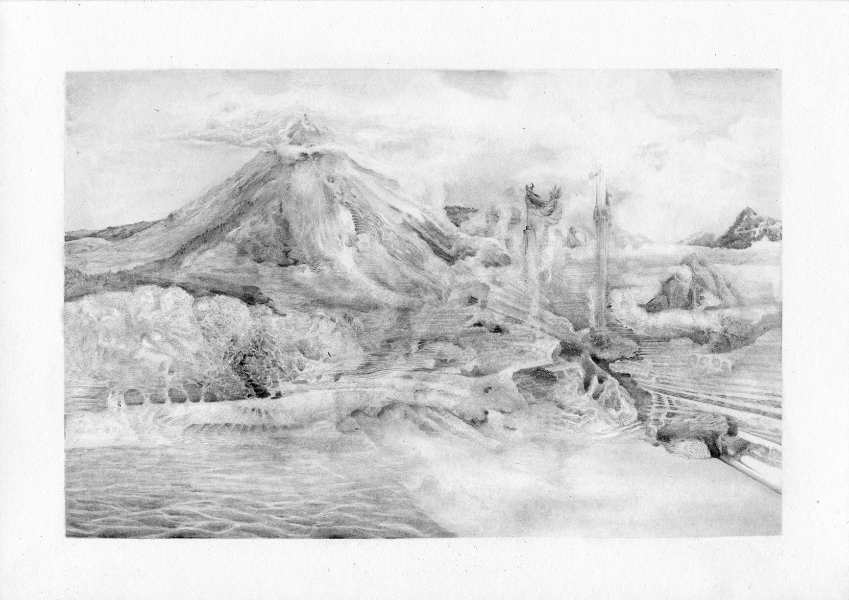 For these drawings, I was driven by the image-making capacity of the eyes in contemplation. This series, in a way also explores landscapes as an open-ended combination between the material image and the completing work done by user or interpreter.